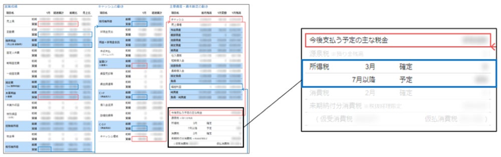 概算所得税予測額の算出以外にも、今期に、いつ・どのくらい所得税の「確定納付」「予定納税」を支払う予定があるのか把握することが可能です。
