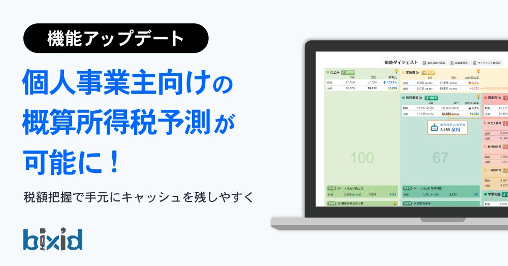 株式会社YKプランニング(本社:山口県防府市、代表取締役社長:岡本辰徳)は、経営支援クラウド「bixid(ビサイド)」の月次財務状況を把握できる「個別モニタリング機能」において、個人事業主向け対応をいたしましたのでお知らせいたします。
