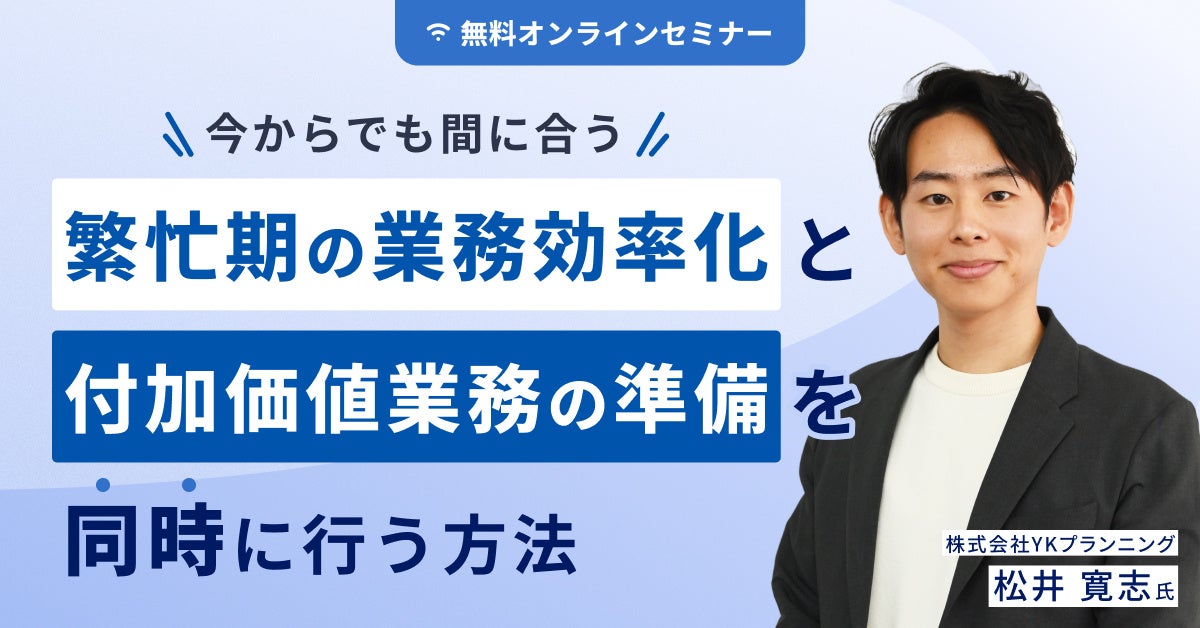 経営判断の“次の一手”を加速させる経営支援クラウド『bixid(ビサイド)』を提供する株式会社YKプランニング(本社:山口県防府市、代表取締役社長:岡本辰徳)は、株式会社マネーフォワード(本社:東京都港区、代表取締役社長グループCEO:辻庸介)との共催で、会計事務所向けに「今からでも間に合う!繁忙期の業務効率化と付加価値業務の準備を同時に行う方法」セミナーを2月21日(金)14時よりオンライン開催いたします。