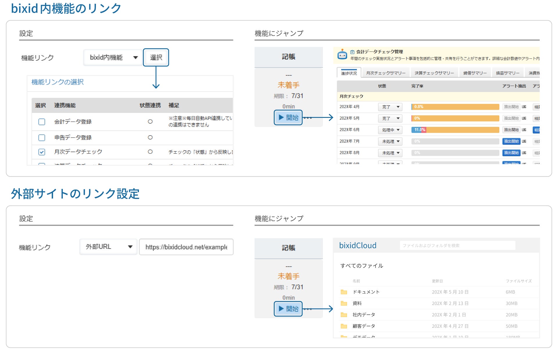 bixidの各種機能とのリンク